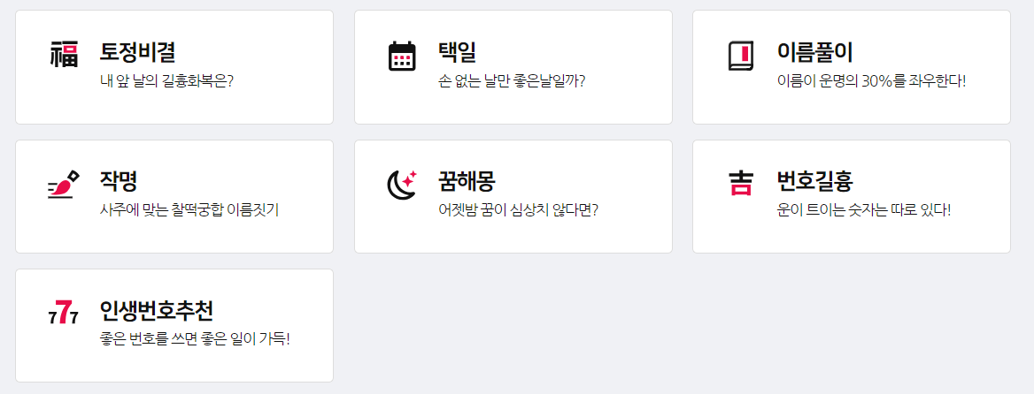 신운세에서는 정론사주, 토정비결, 궁합, 이름풀이, 오늘의 운세 등을 볼 수 있습니다.