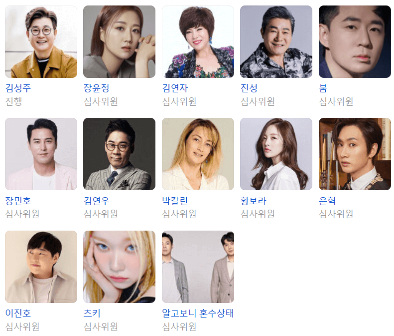 트로트 오디션 그 자체라고 할 수 있는 MC 김성주가 맡았으며, 장윤정, 김연자, 진성, 붐, 장민호, 김연우, 박칼린, 황보라, 슈퍼주니어 은혁, 이진호, 빌리 츠키, 알고보니 혼수상태와 같은 막강 마스터 군단이 참여합니다.