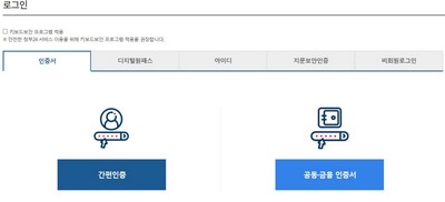 2. 보조금24 로그인화면- 공동인증서, 간편인증서, 아이디, 지문중 원하는 방식 선택 - 로그인을 합니다.
