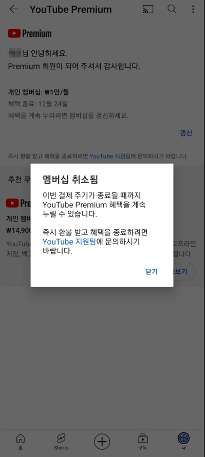 5. 멤버십 취소가 된 것을 확인하실 수 있습니다.
