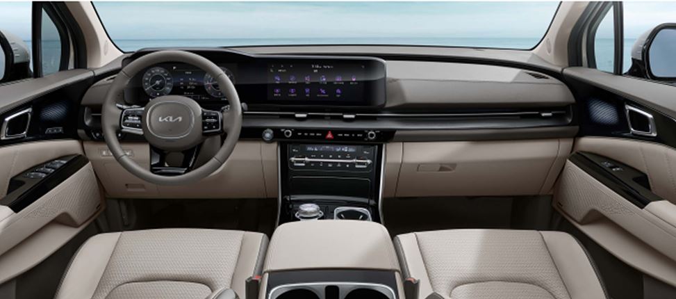 카니발 하이브리드 실내 디자인은 12.3인치 디지털 계기판과 12.3인치 센터 디스플레이가 하나로 통합된 파노라마 디스플레이가 적용될 것으로 예상됩니다.